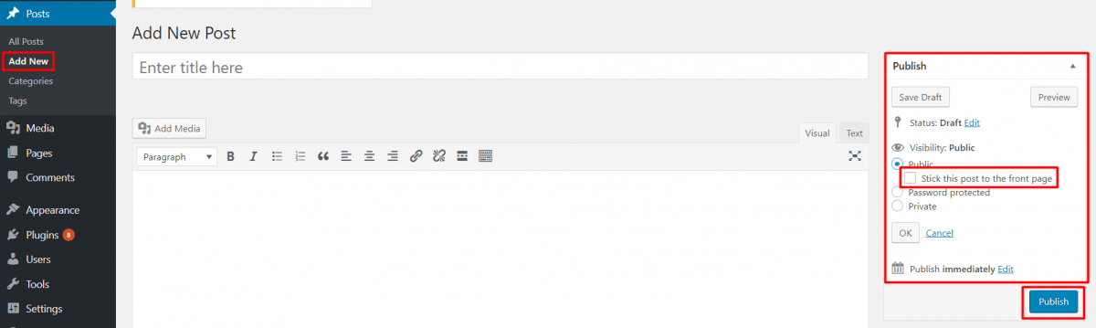 El problema es que la opción no es muy visible, se halla en las opciones de publicación, pero luego no hay nada más que nos indique visualmente en nuestro backend que el post está «fijado».
